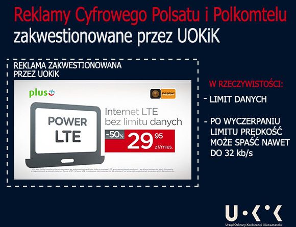 Kampanie reklamowe Cyfrowego Polsatu i Polkomtelu dotyczące ofertysmartDOM i Power LTE wprowadzały w błąd, uznał Urząd Ochrony Konkurencji i Konsumentów.